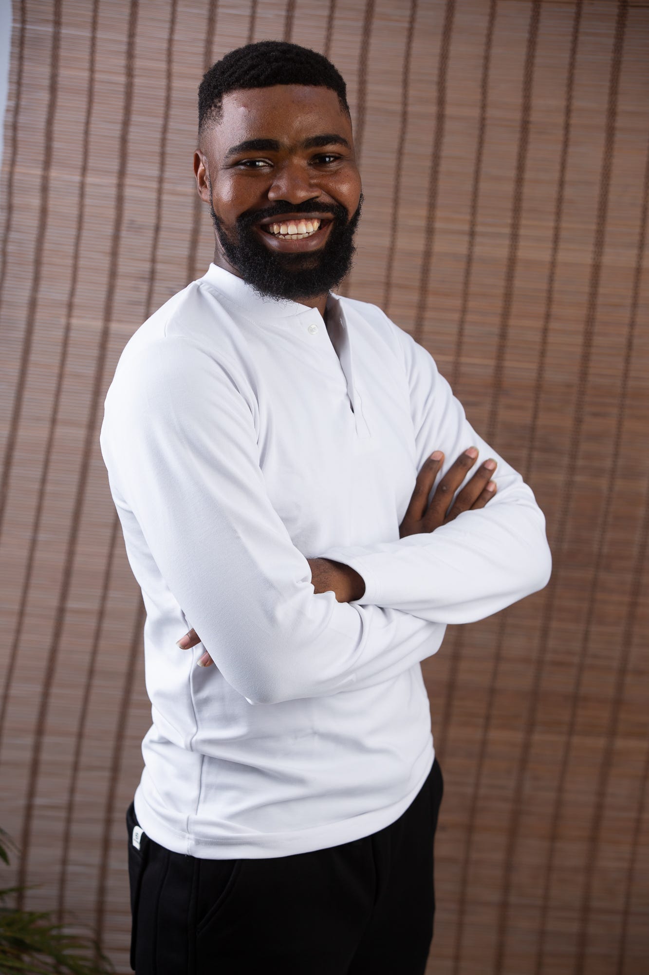 4. The White Long Sleeve Polo – For Bar Hangouts & After-Hours Moves
