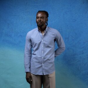 ₦34,999.00Designed for versatility — boardroom or after-hours Cutaway collar Cotton oxford Long sleeves with adjustable button cuffs. Model is wearing a 15.5 -