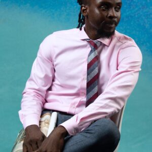 ₦34,999.00Designed for versatility — boardroom or after-hours Cutaway collar Cotton oxford Long sleeves with adjustable button cuffs. Model is wearing a 15.5 -