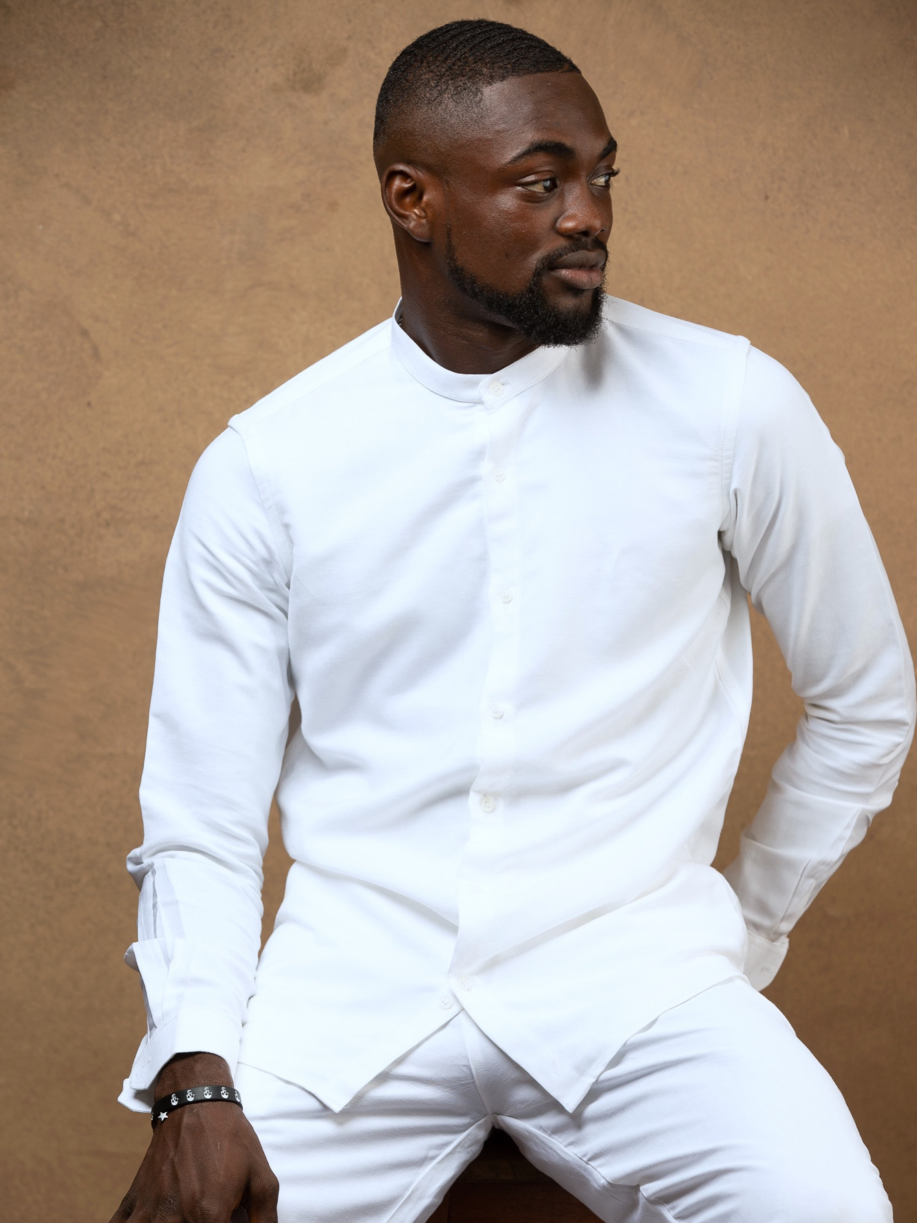 - Band collar long sleeve cuff shirt