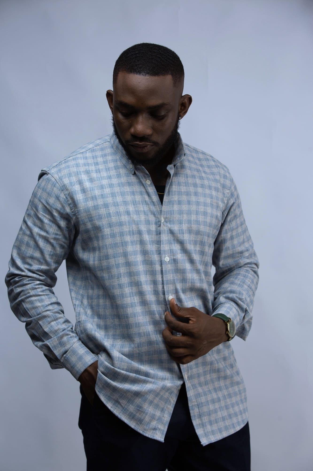 Pair with navy blue or black chinos or tailored trousers for a fire combo. Roll up the sleeves to add charm.